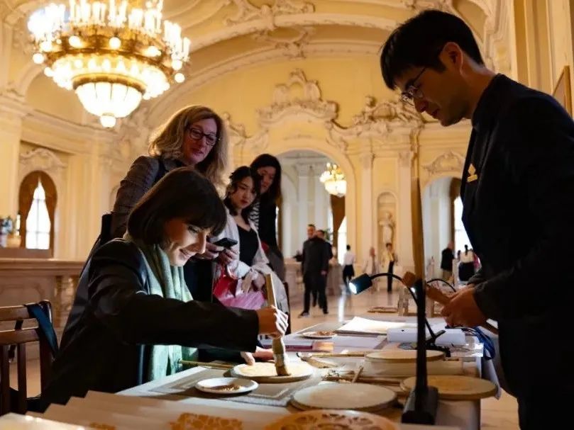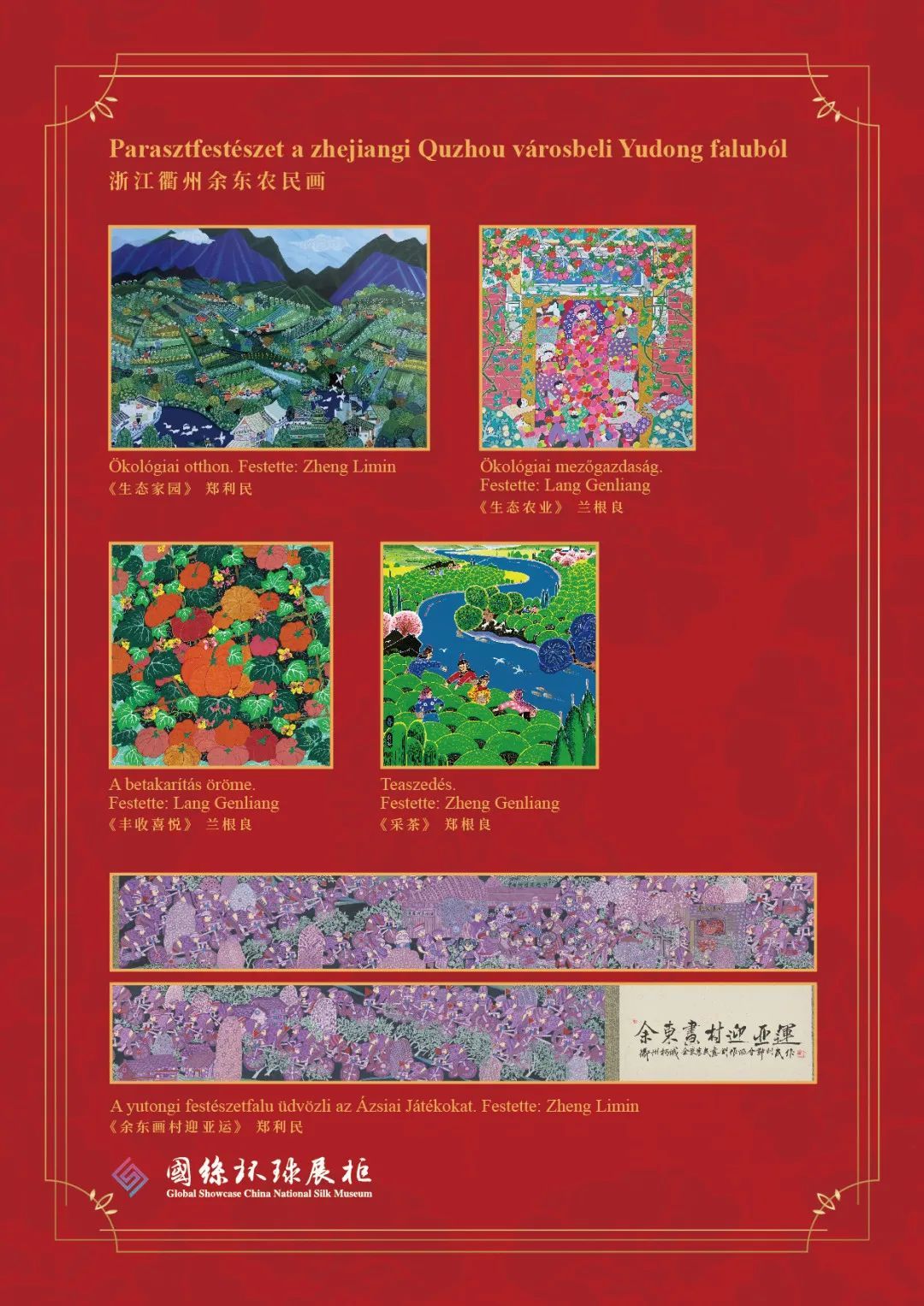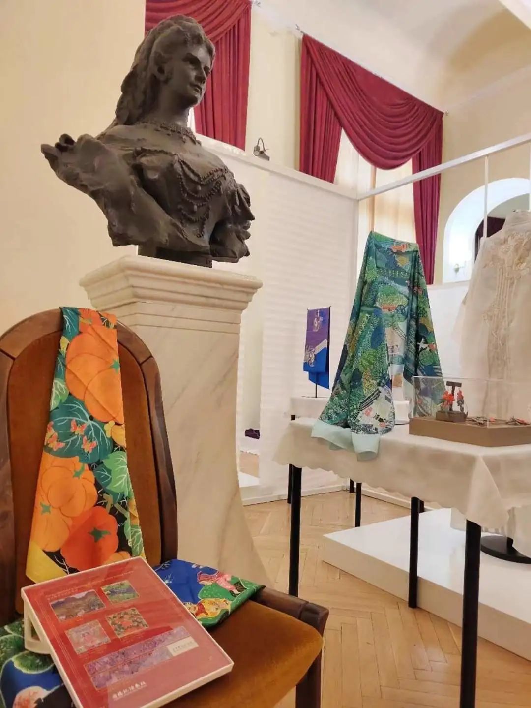 10月24日,“丝路绮粲——中国丝绸艺术展”在匈牙利农业博物馆盛大开幕。5条印有余东农民画的文创丝巾作为当代丝织品优秀案例亮相展会,令人恍若瞬间跨越迢迢山水,在美丽的多瑙河畔,感受到来自遥远东方的诗意与浪漫。