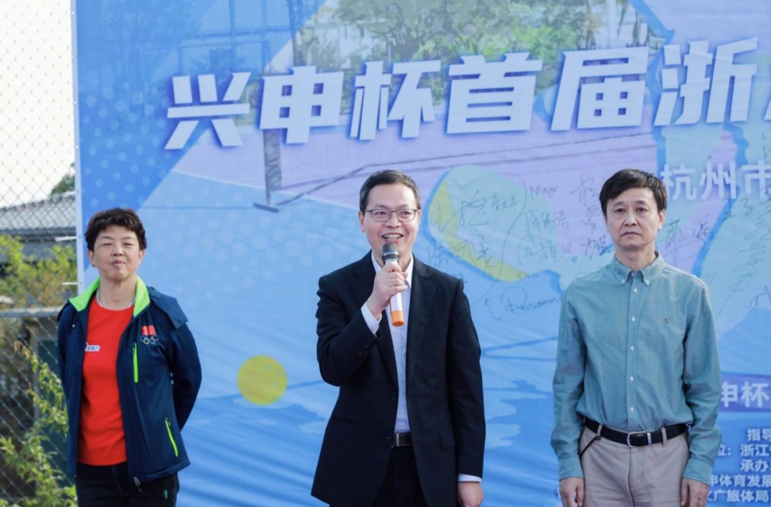 来自赛事主办单位的国际匹克球联合会浙江联络处主任、浙江省青少年体育运动联合会书记王进先生,介绍了匹克球的独特性在于其上手容易门槛低,场地易得花费少,观赏性社交性强,运动受伤风险小等特点,非常适合作为全民健身项目的推广。