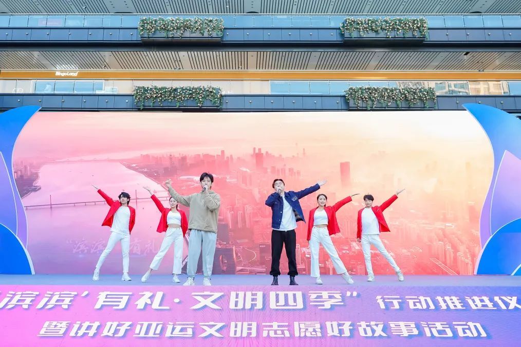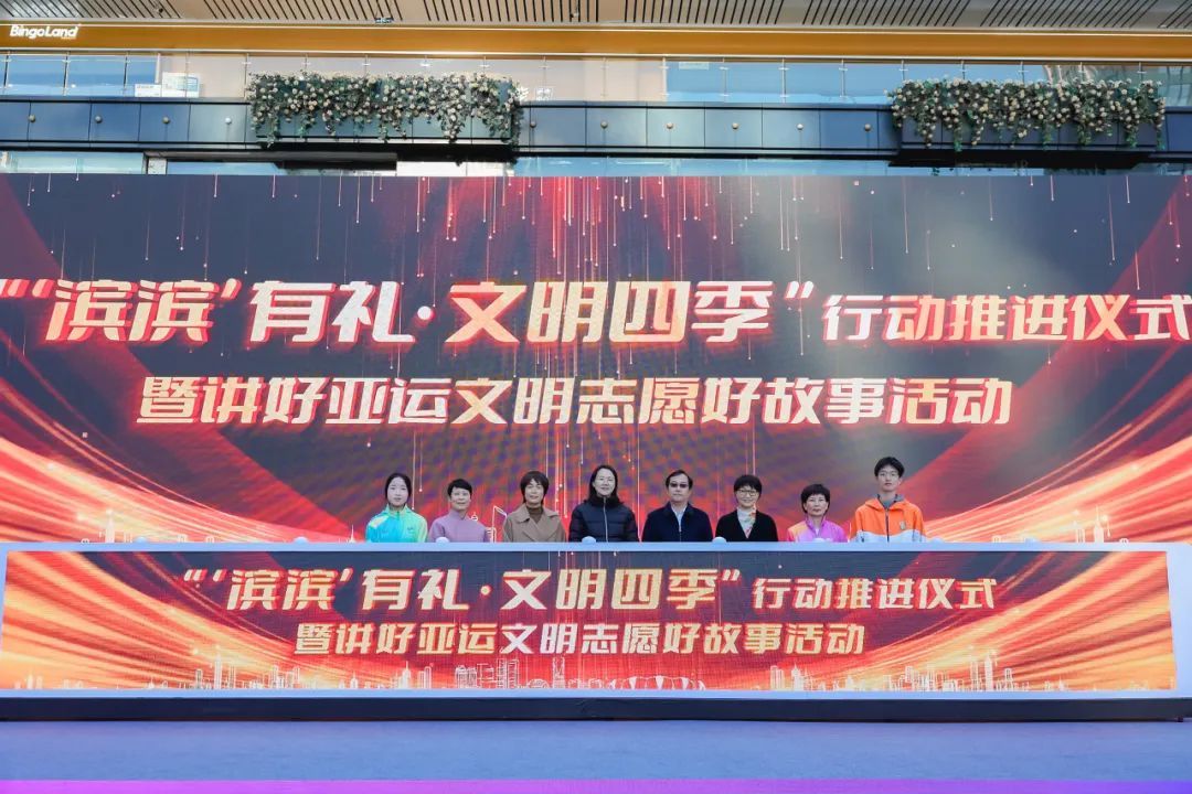12月1日,为放大亚(残)运会赛后效应,高新区(滨江)开展“‘滨滨’有礼·文明四季”行动推进仪式暨讲好亚运文明志愿好故事活动,持续打响“‘滨滨’有礼”品牌,展现“季季有特色、月月有主题、周周有活动”的特色,唱响“‘滨滨’有礼、文明礼赞”的四季歌。