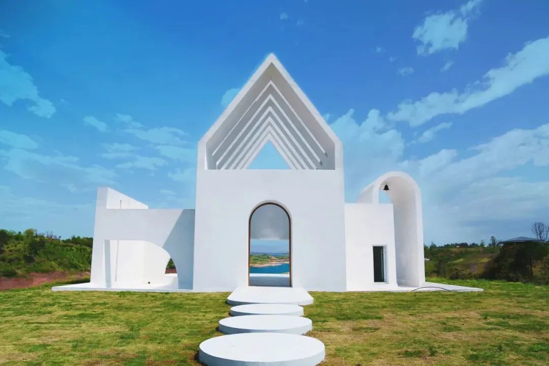 漫步大草坪,在“天犀池”旁荡秋千,在天空之境景观中感受湖水的蔚蓝与宁静,走过小小的洁白教堂,穿过浪漫的紫藤隧道……