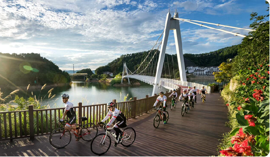 建设最早、也是最先被大家熟知的骑行线,全长70多公里,红色的自行车道跨桥、穿村、钻隧道,是一条结合动感与挑战的自驾骑游线路。