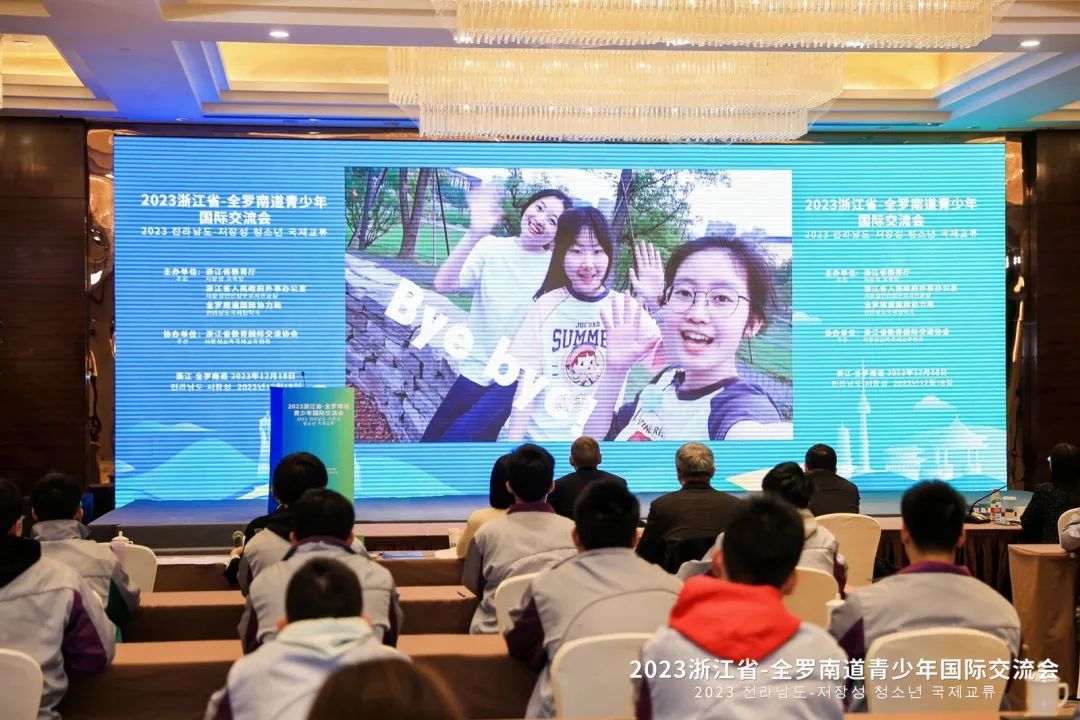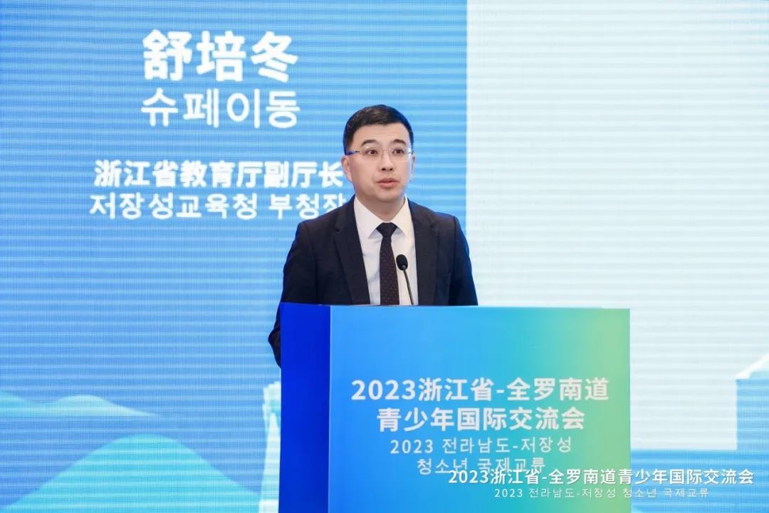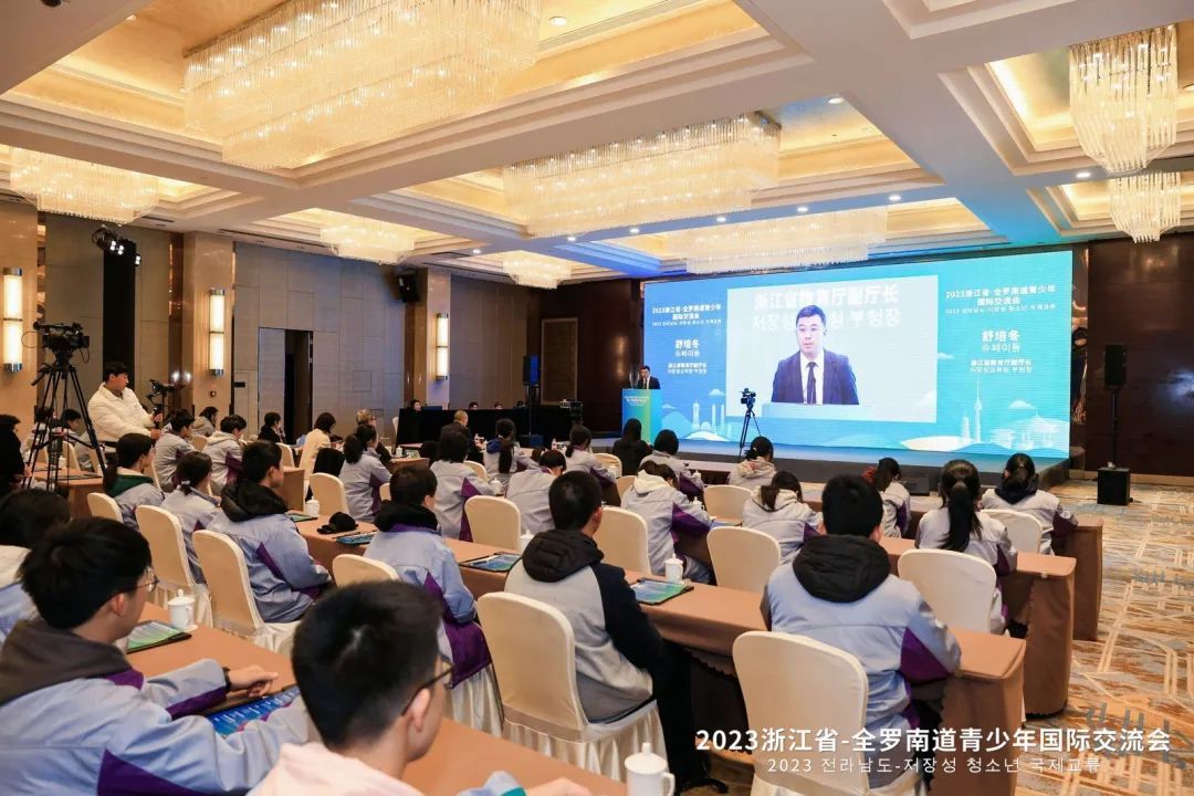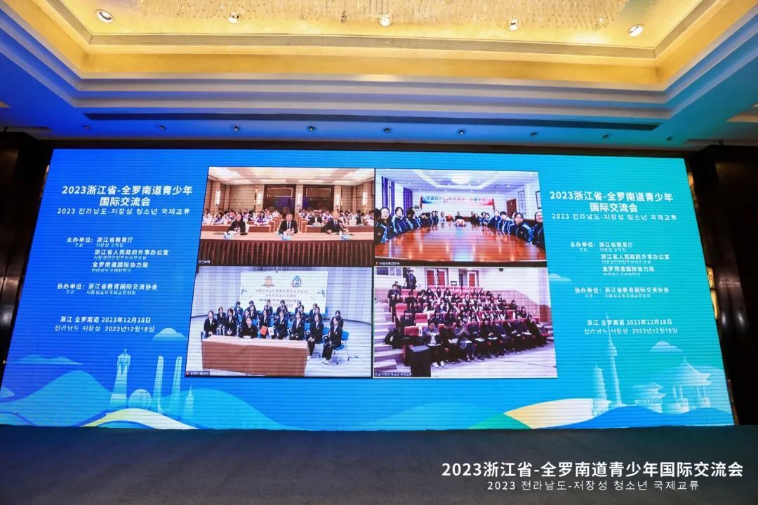 12月18日下午,浙江省与韩国全罗南道青少年国际交流会通过视频连线方式举行。活动由省教育厅、省外办、全罗南道国际协力局主办。省教育厅副厅长舒培冬、省外办二级巡视员施华忠、全罗南道希望人才培育课课长张光烈、全罗南道青少年未来财团院长梁美兰等出席活动并致辞。