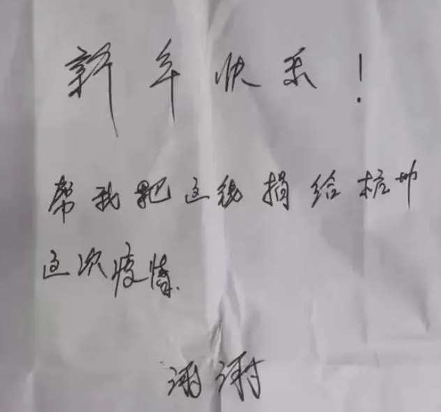 这时候,派出所工作人员已经翻出了早前的新闻。 2022年2月1日,一位“头盔哥”就跑进笕桥派出所,丢下1000元现金和一张纸条后匆匆离开。 纸条上面写着“新年快乐!帮我把这钱捐给杭州这次疫情”。