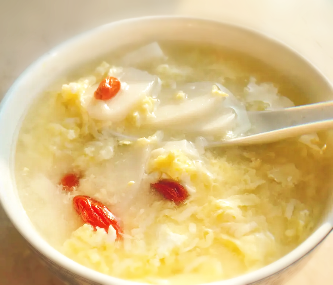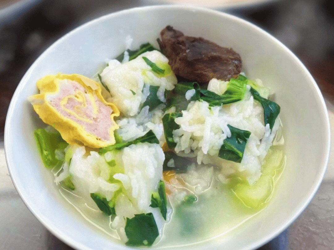 一碗热乎乎的年糕饭汤,是萧山人冬天的最爱。食材很朴素,前一晚的剩米饭、小半棵青菜、提前切完浸泡在水里的年糕片,一碗下肚,从嘴里暖到胃里。