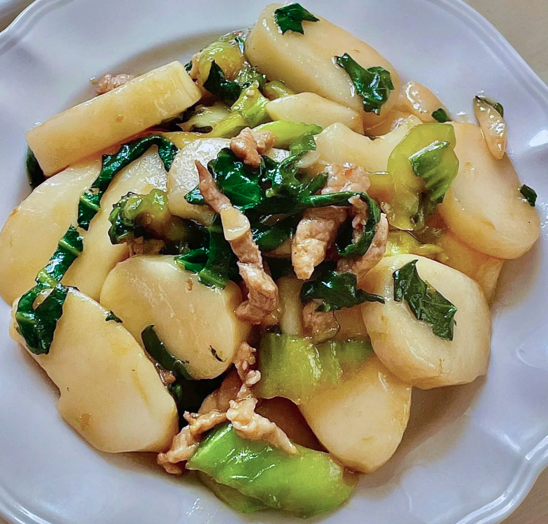 说起炒年糕,那不得不提冬笋炒年糕。冬笋鲜美,年糕软糯,搭配在一起,那味道怎一个“香”字了得!