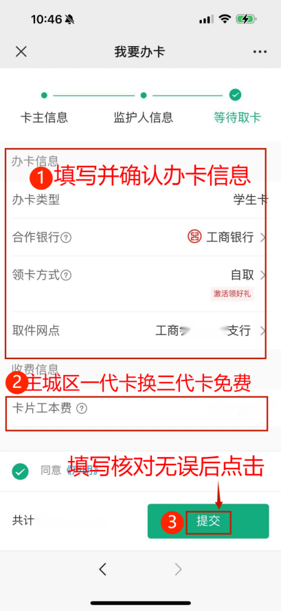 第三步:根据系统提示填写信息、上传证件,确认并提交,审核通过后持相关证件至所选网点领取。