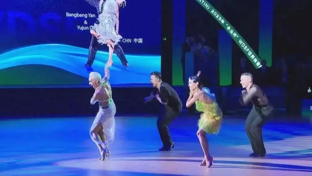 12月9日晚,在上海举办的2023世界体育舞蹈大奖赛总决赛的开场表演中,世界拉丁舞冠军克里斯蒂娜也跳起了“科目三” 图源:“上观新闻”微信公众号