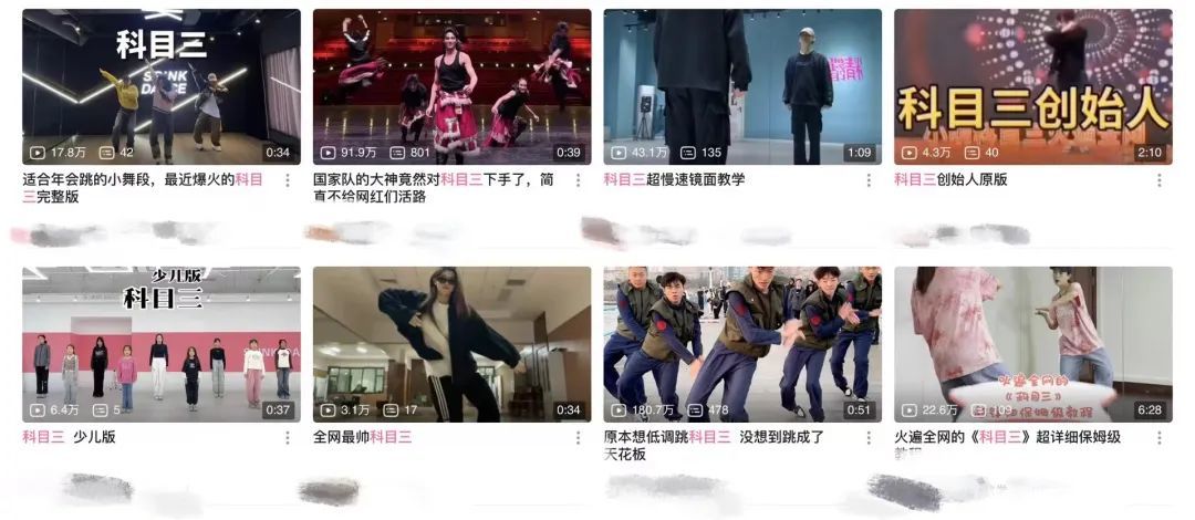 视频网站上关于“科目三”的相关截图