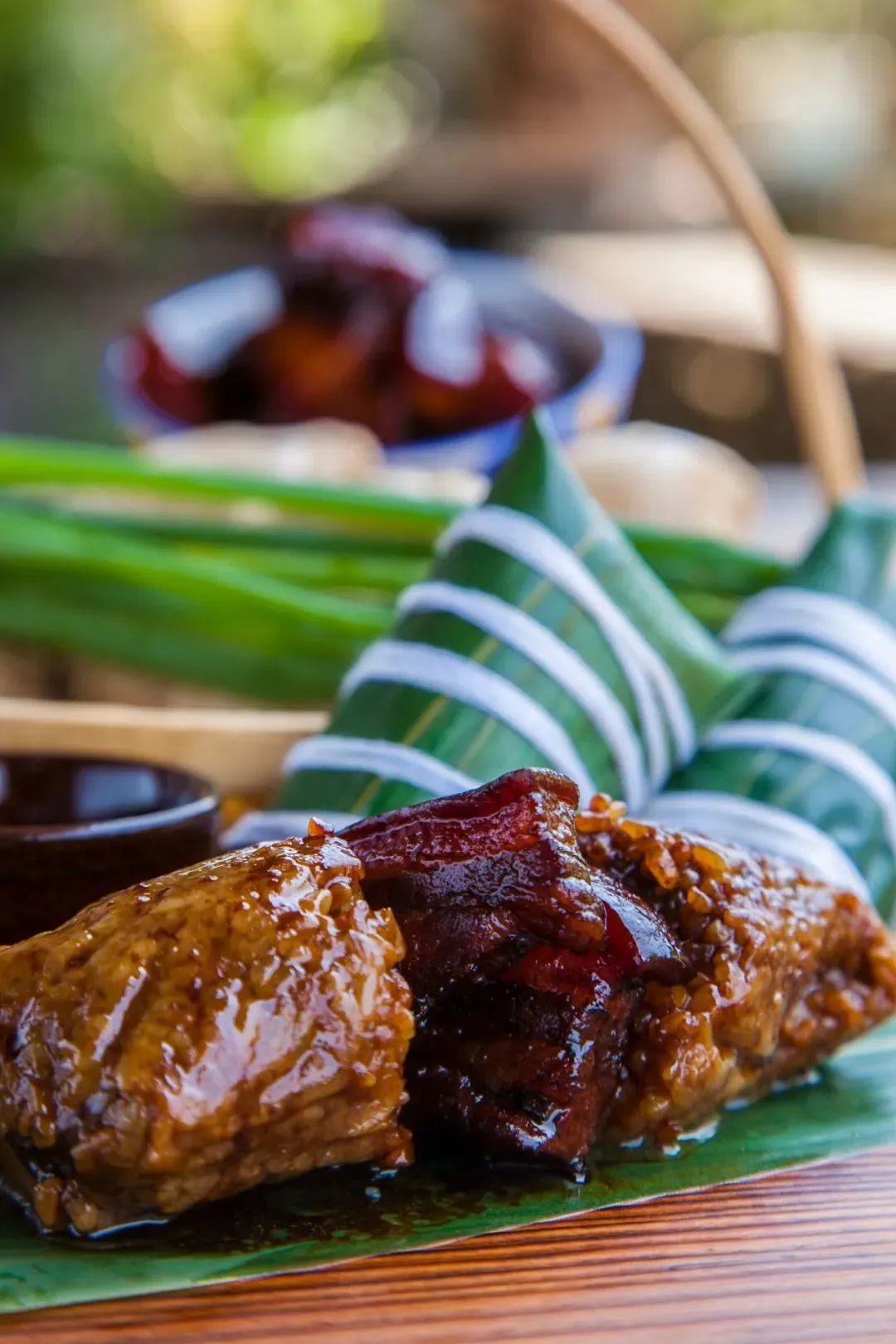 市区有把浆粽做出了名堂的“黄大星”,乌镇有形似小船的船头粽,个大饱满色泽鲜艳,口味糯软,被糯米包裹着的肉肥而不腻,口齿生津。