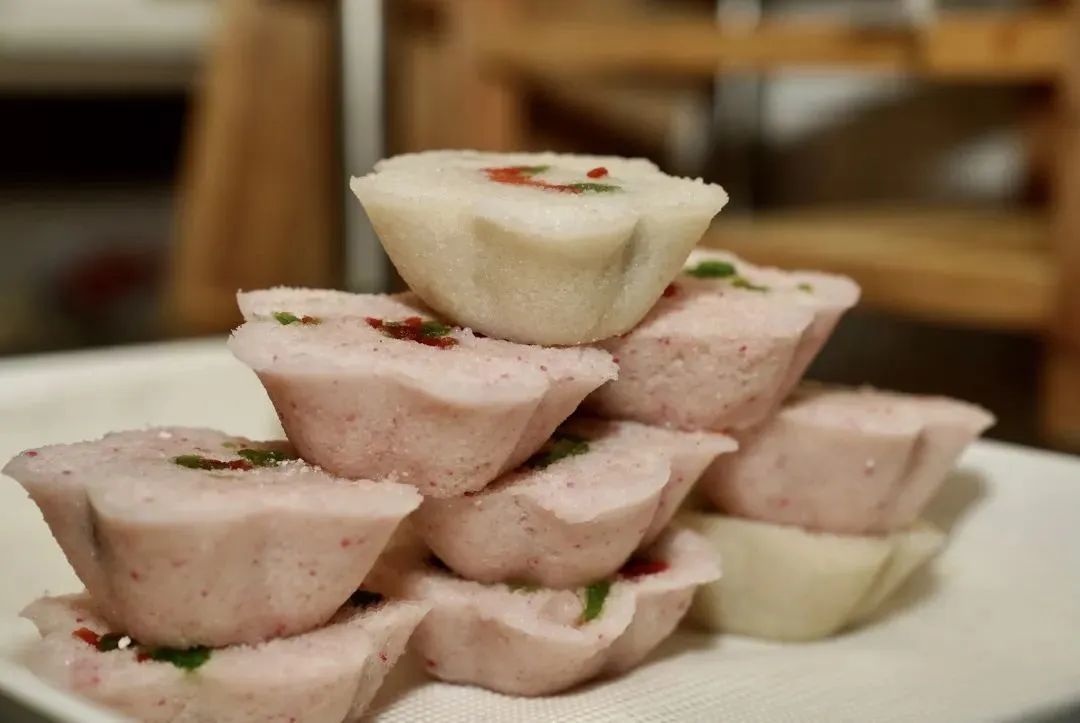 蒸汽腾腾、米香飘溢,食客的脚步哪里还挪得动!等着蒸笼揭开,拨开弥漫的雾气,那小小的一块定胜糕,看上去甚是可爱,尝起来香糯可口,甜而不腻。
