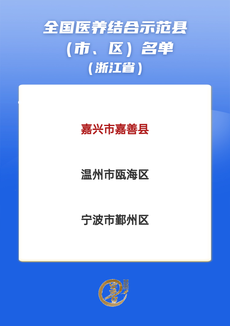 嘉善县不断满足老年人日益增长的健康养老服务需求,2019年以来共计13个医养结合相关项目列入县政府民生实事项目;投入33.16亿元用于养老、医疗等系统建设,推进医养结合服务标准化、规范化、制度化、专业化;全县二级及以上综合医院和中医医院老年医学科规范化建设率100%;养老机构和医疗机构实现签约合作100%;基层医疗机构提供安宁疗护服务100%,全县老龄健康事业迈上新台阶。