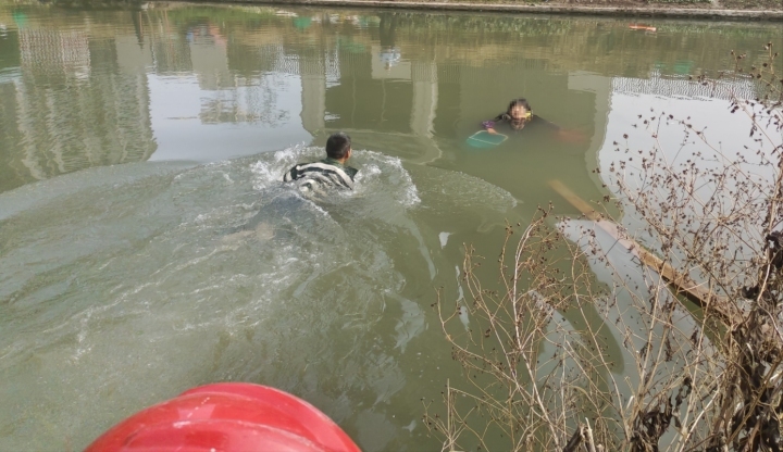 两名队员连忙上前查看,原来一位老奶奶不慎落水正在河中呼救。只见老奶奶身着羽绒服,只有脖颈以上露在水面上,天气很冷,传递呼救声音也慢慢低沉,情况十分危急。