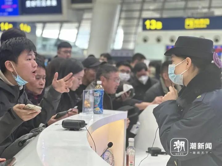 杭州东站问询台前里三层外三层被围满