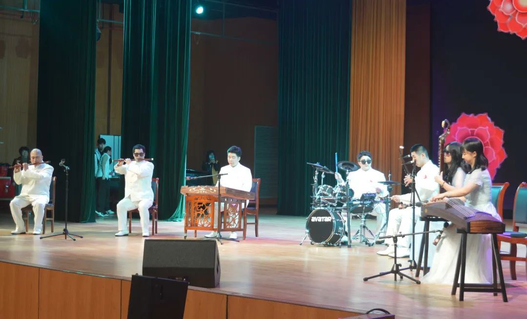 重头戏《龙的传人》,是由六六声生艺术团的七位盲人艺术家带来的器乐合奏。该曲将传统与现代的曲风、民族与世界的文化相结合,曲风新颖,时尚大气,传递出华夏儿女的自豪与幸福,赢得观众一阵阵掌声。