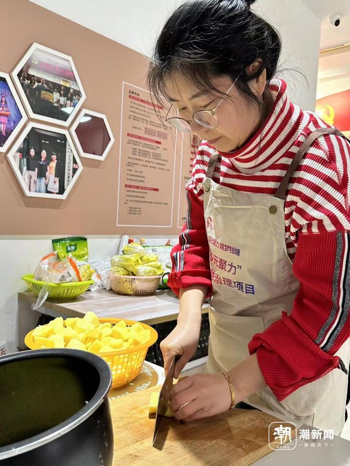 忙着切土豆的社工孙璐。记者 陈蕾 摄