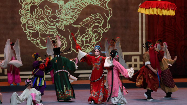 这其中,2023年12月29日晚在国家大剧院,亮相2024年新年戏曲晚会的,有越剧新版《梁山伯与祝英台》选段、台州乱弹《我的芳林村》选段,以及浙江婺剧参演的武戏《戏武英豪》。