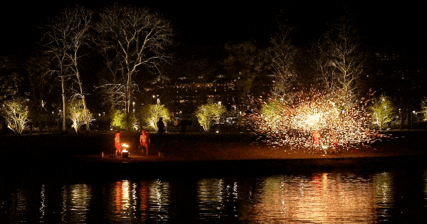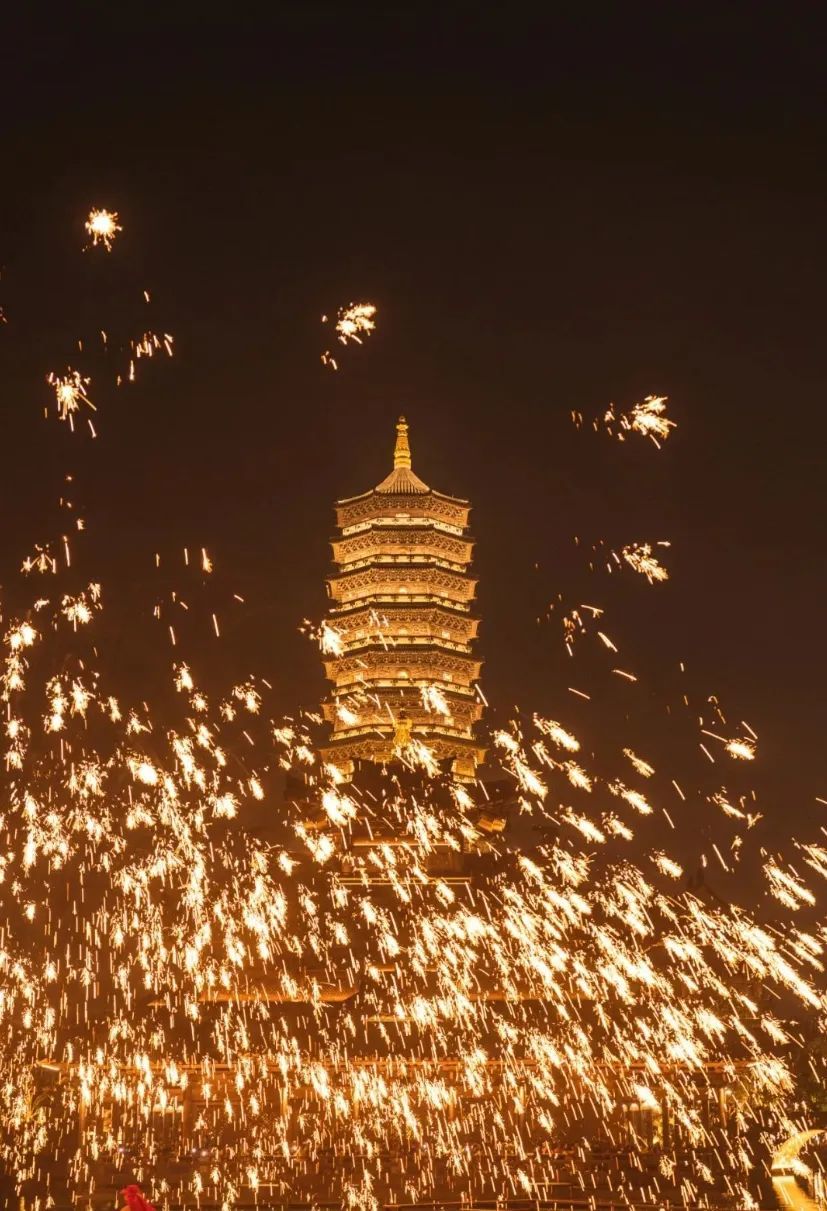 此外,从除夕夜至大年初七,古镇禅堂区域的非物质文化遗产打铁花表演吸引了众多游客驻足,绚烂的铁花点亮天空,璀璨夺目。