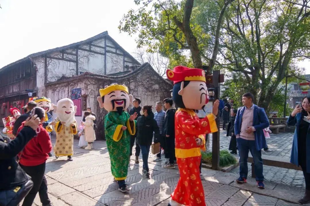 与此同时,陆上巡游还有五路财神、舞狮舞龙、提福灯走桥,“老街派福游”洋溢着乌镇浓郁的地方民俗风情。