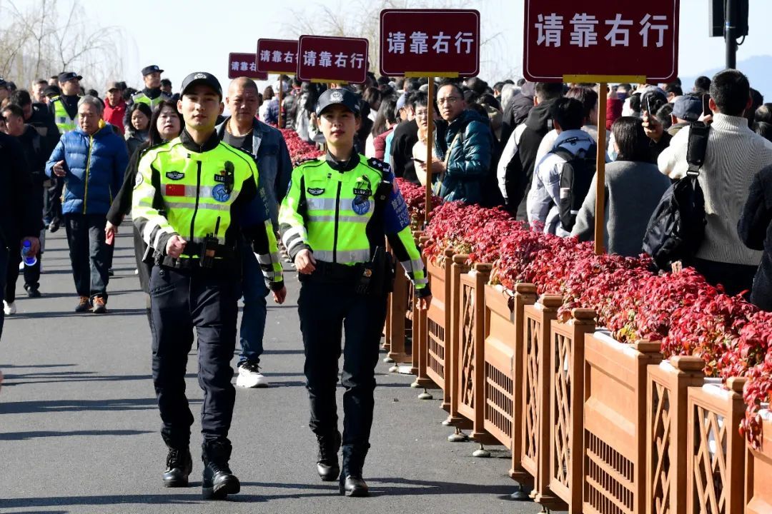 景区分局在名胜区党工委和市局党委的坚强领导下,牢固树立“群众过节、公安站岗”理念,想细想全想万一、做实做深做万全,连续作战、倾力奉献,全面打赢新年首场维稳安保硬仗,为人民群众欢度春节营造和谐稳定的社会环境。期间,全区共接待游客504.41万人次,与2019年同比增长23.72%。分局累计投入各类安保力量9000余人次;接报有效警情279起,无刑事警情,未发生重大敏感案事件和涉警负面舆情。