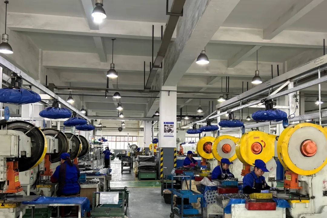 不只是发货忙,在东华链条的生产车间里早已恢复往日的繁忙景象,一台台机器设备有序运转,工人们在各自岗位上认真操作,各条生产线已全面开启,员工到岗率在95%以上。