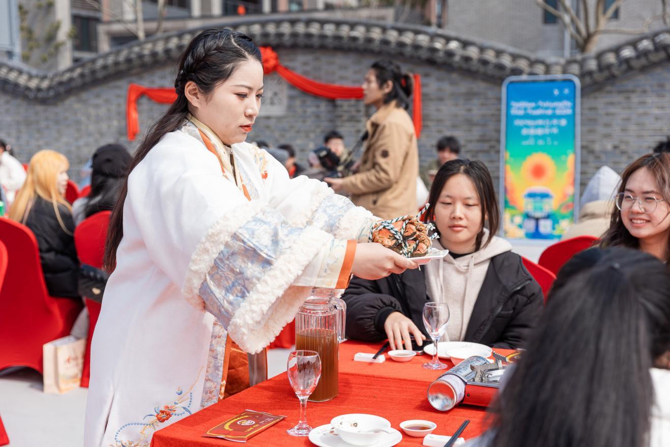 民以食为天,游以食为先。3月2日上午,台州路桥举行首届“辣呵呵”千人宴活动,青年男女们汇聚在十里长街,在古色古香中共同品尝台州菜——全姜宴,现场欢乐笑语,热闹非凡。
