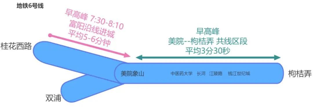 其中,早高峰增投3列车,共线段美院象山站至枸桔弄站区段行车间隔由平均4分钟加密至3分30秒,运能提升13%;支线段富阳沿线进城方向,早上7:30-8:10行车间隔加密至平均5-6分钟。