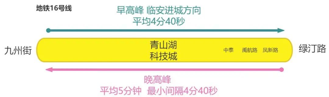 早高峰增投1列车,九州街站至绿汀路站方向行车间隔由平均5分50秒加密至4分40秒,早上8:36左右增设中泰站始发前往绿汀路的加开车1列次,最短行车间隔4分钟,运能提升15%;晚高峰增投1列车,绿汀路站至九州街站方向行车间隔由平均5分50秒缩短为5分钟,最短行车间隔4分40秒,运能提升7%。