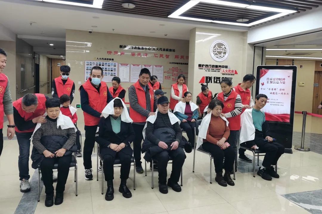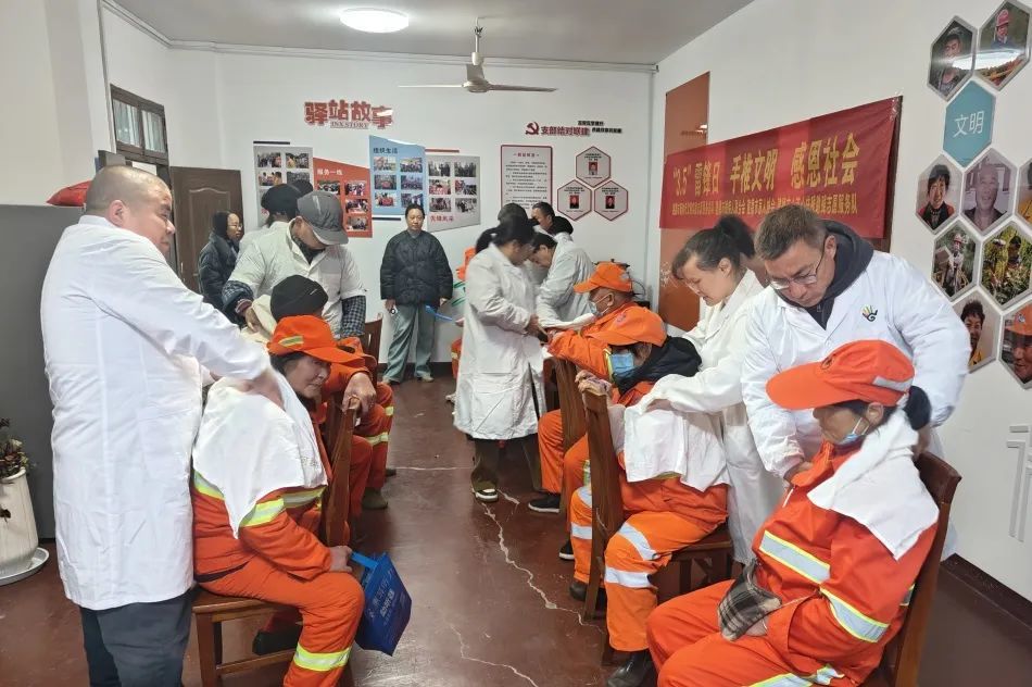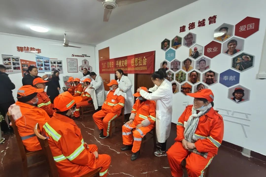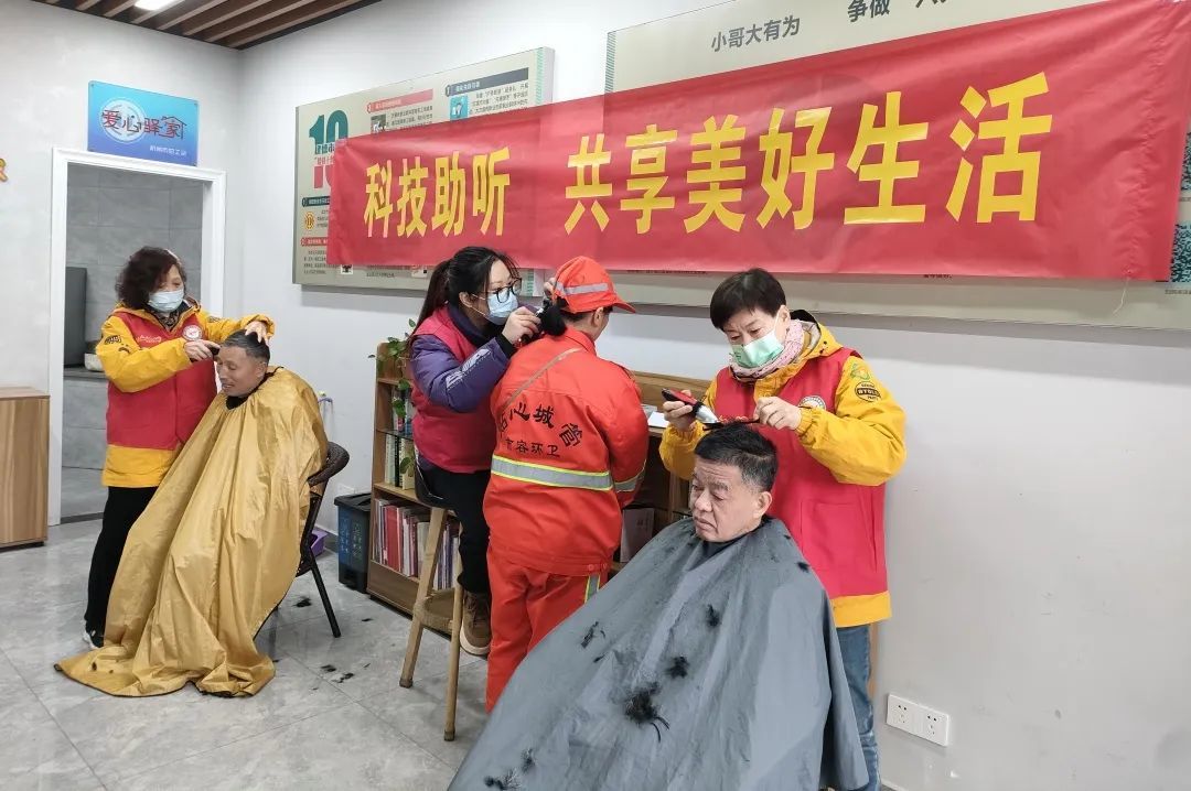 建德市心连心扶残助残志愿服务队组织志愿者前往建德城管驿站府前党群服务站,为环卫工人提供推拿、理发、耳道检查及清洁等多元化服务。盲人按摩师们为一早来到驿站的60余名环卫工人进行按摩推拿,让劳累一天的环卫工人们得到身心的舒缓与放松。