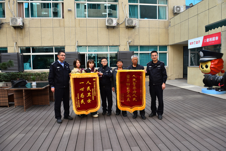 一家人给警方送上锦旗 受访者供图