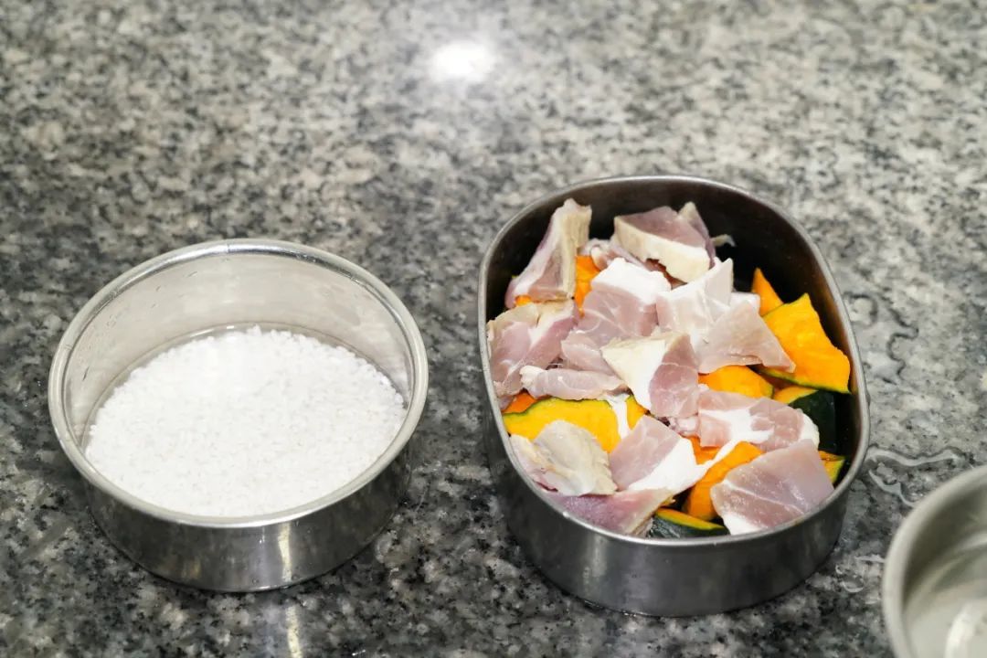 送走一位买鱼的顾客后,姚美珍从身后的摊位上拿出了两个早已准备好的饭盒,一小碗米饭和一碗南瓜咸肉,便径直往市场的西面走去。