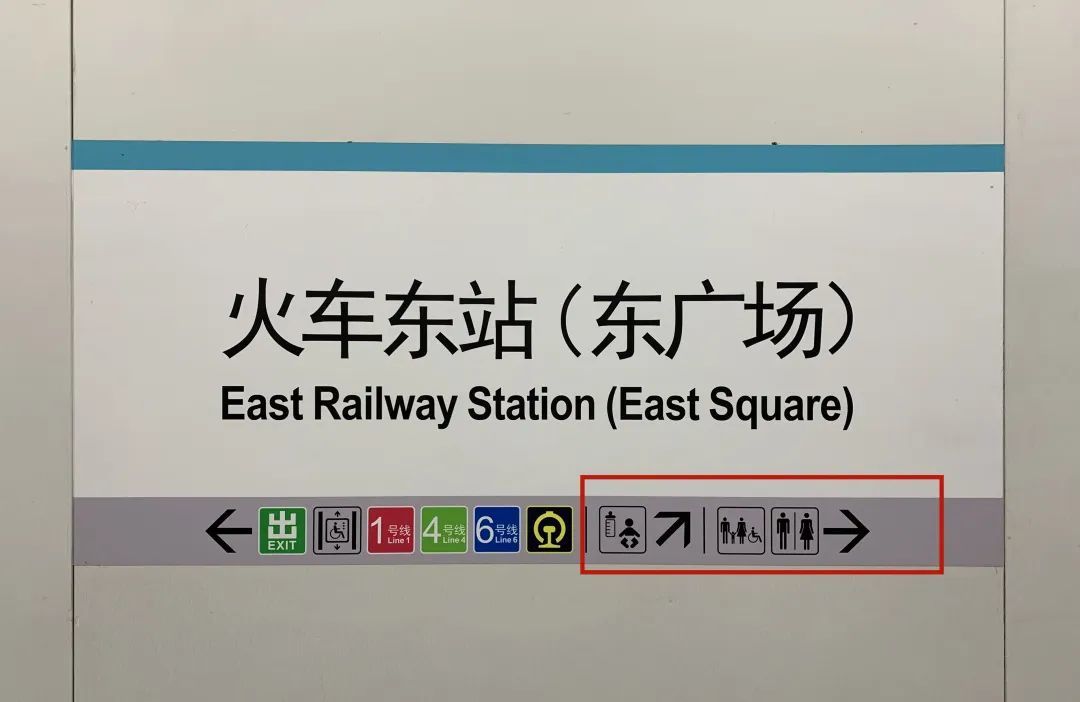 有卫生间的站台,乘客可以通过查看站台柱子的站名标志,跟着指示箭头就可以帮您快速找到站台卫生间啦。