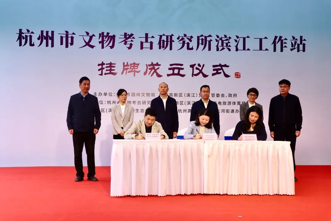 4月23日下午,杭州市文物考古研究所滨江工作站挂牌仪式于高新区(滨江)举行。杭州市园林文物局党组书记、局长高小辉与杭州高新区(滨江)区委常委、宣传部部长翟慧清等出席揭牌仪式。