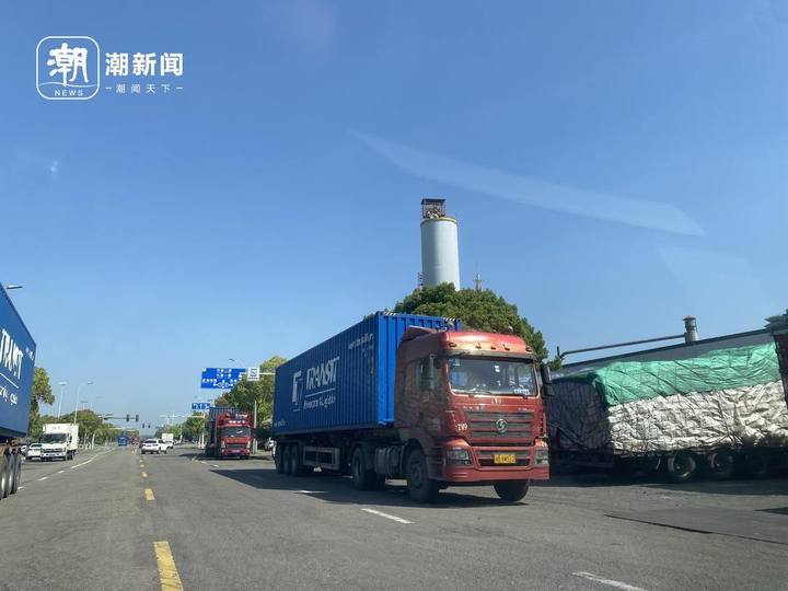 4月18日下午,在兴慈三路,记者发现,大货车和工程车很多。潮新闻记者 王晨辉 摄