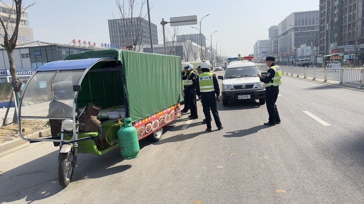 交警在对三轮餐饮车车主进行交通安全教育。前湾新区公安分局 供图