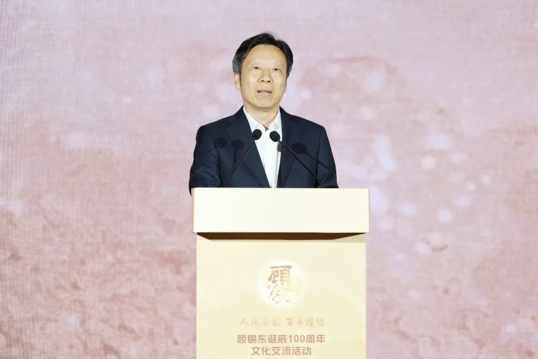 陈涌泉首先代表中国戏剧家协会向嘉善这片孕育了伟大剧作家顾锡东先生的热土致敬,向顾锡东家属代表表示亲切的慰问。他表示,顾锡东先生坚持为观众写戏,他的妙笔生花让浙江小百花蜚声海内外,让无数演员大放异彩,让万千观众流连忘返,进一步扩大了越剧艺术在全国的影响力,生动演绎了剧作家和剧团的关系:一个好的剧作家可以养活一个剧团,成就一批演员,带动一个剧组的发展。他认为,要始终坚持以人民为中心的创作导向,为观众写作,为人民而歌。希望青年戏剧工作者以顾锡东先生为榜样,继承先贤精神,在习近平文化思想的指引下,肩负新的文化使命,踔厉奋发,勇毅前行,把戏剧世界推向新的境界。
