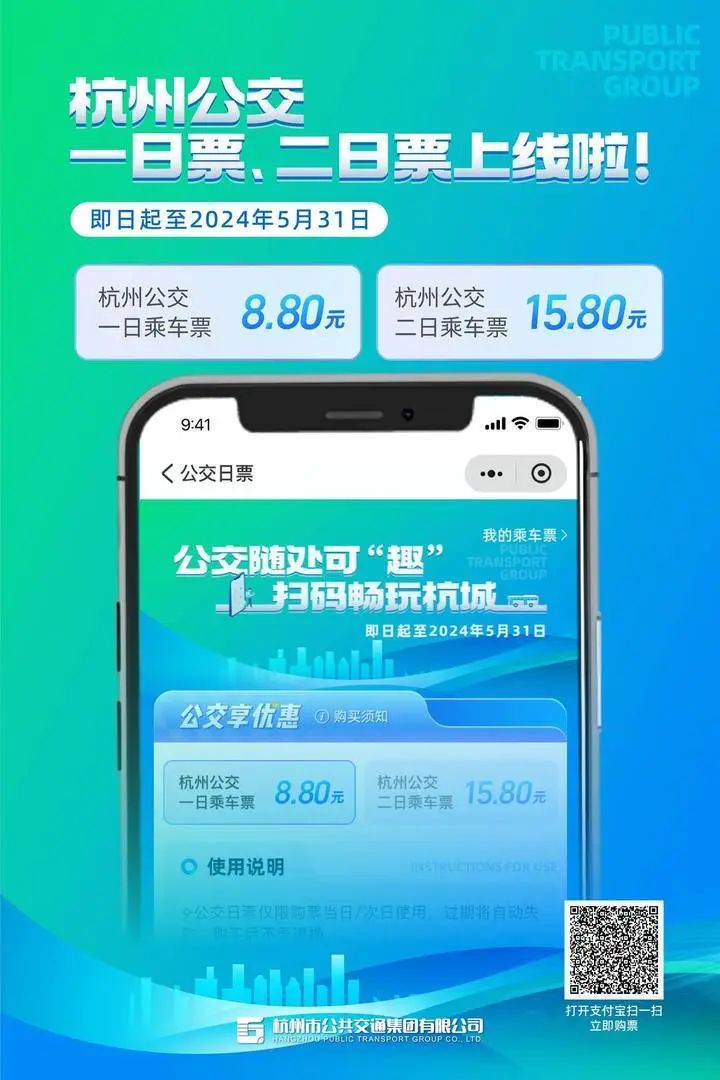 也可以支付宝搜索:【公交优惠日票】进入购买。当然市民乘客在公交站台也可以扫码线下海报等物料购买哦~