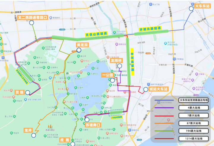 为了提升假期期间市民游客在西湖景区的公共出行体验,杭州公交进一步优化景区线路,五一假期将针对4、7、87、194、1314路在部分时段推出“越站”服务举措,即车辆仅停靠在客流较为集中的站点,通过避开景区外围的“堵点”,利用公交专用道及城市快速路,有效提升车辆的运营效率,减少乘客等候时间。
