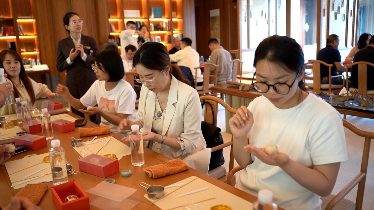 体验茶飨手作,赴文化之约,为感受传统手工艺的魅力,近日,“双径之上·茶飨手作”茶果子体验活动在杭州市余杭区径山镇径山禅茶文化交流中心举办。