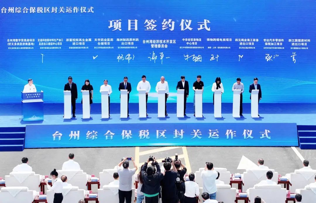 当天的封关运作仪式上,得物跨境电商项目、世达汽车零部件保税加工项目、海洲制药原料药出口项目等10个保税加工、物流分拨、跨境电商项目集中签约。
