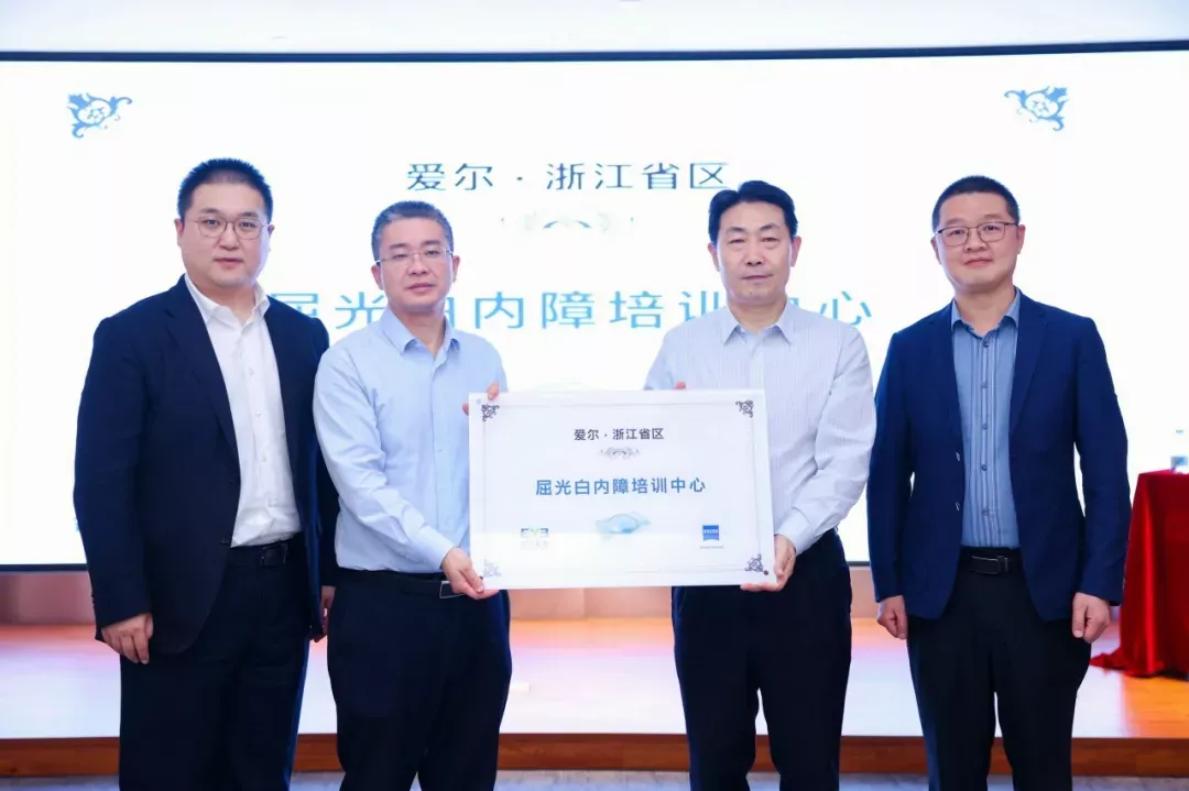 本次会议邀请爱尔集团数十位院长和科主任,共同见证浙江省区屈光白内障培训中心授牌,共同探讨精准屈光白内障诊疗新进展。蔡司浙江省区经理李育龙先生和福建省区经理颜斐嵘先生共同为爱尔眼科浙江省区副总院长潘伟华院长和宁波爱尔光明眼科医院曾庆森副院长颁发屈光白内障培训中心牌匾。