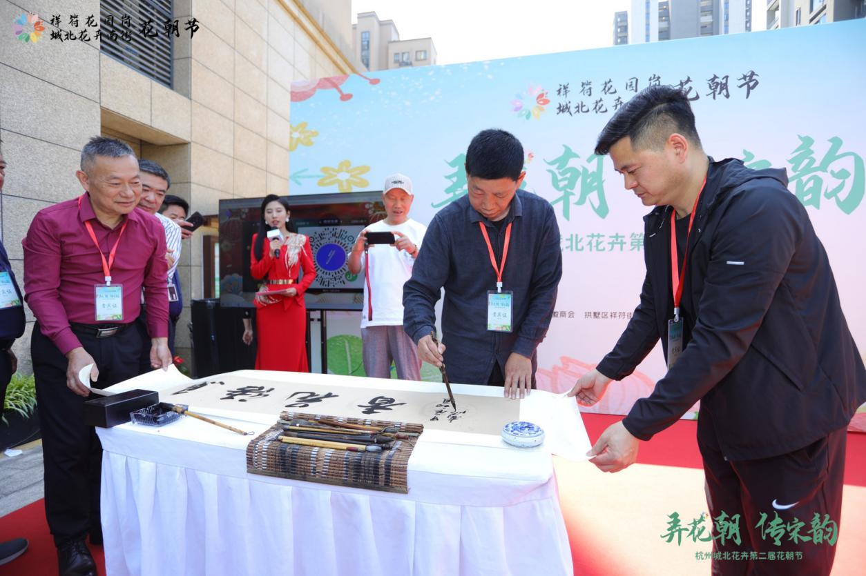 伴随着主持人热情高昂的开场,“弄花朝 传宋韵”杭州城北花卉第二届花朝节正式拉开帷幕。众多领导嘉宾们齐聚现场,共同感受花朝节的魅力。随后,杭州城北花卉有限公司董事长胡乃云、城北花卉市场合作伙伴书法大师周晨、拱墅区花园岗社区黄效红书记、杭州市安徽商会党总支书记兼秘书长周帅、杭州市旅游协会副会长兼秘书长张安胜为此次花朝节发表致辞,衷心祝愿花园岗花朝节顺利举行,并带来自己最真诚的祝福和期盼。