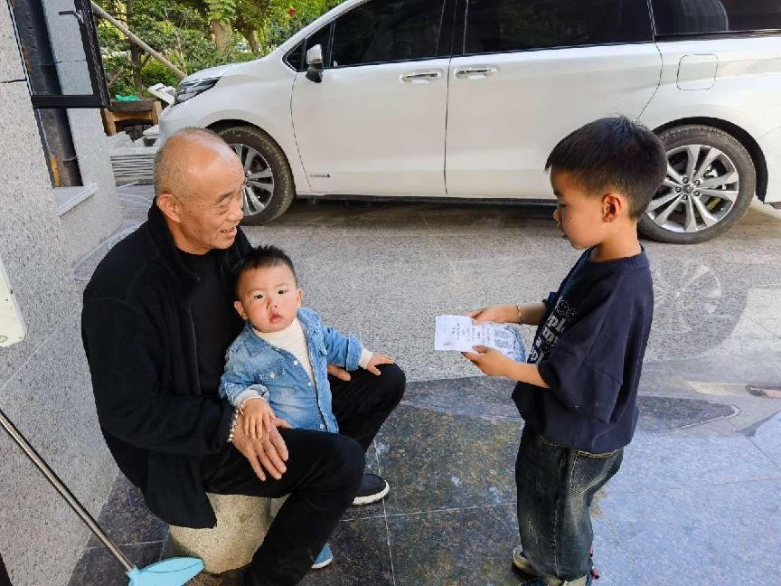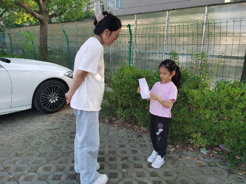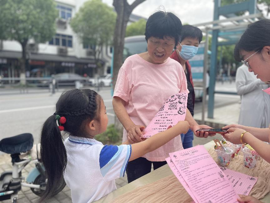 大班的哥哥姐姐拿上精心制作的宣传单走进社区,为即将入园的弟弟妹妹和社区的叔叔阿姨们讲解在幼儿园的学习、生活。