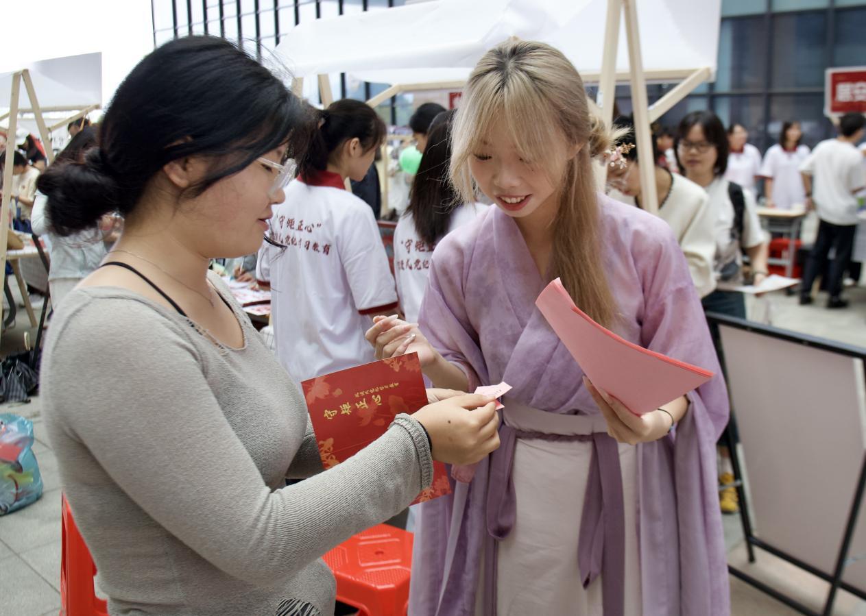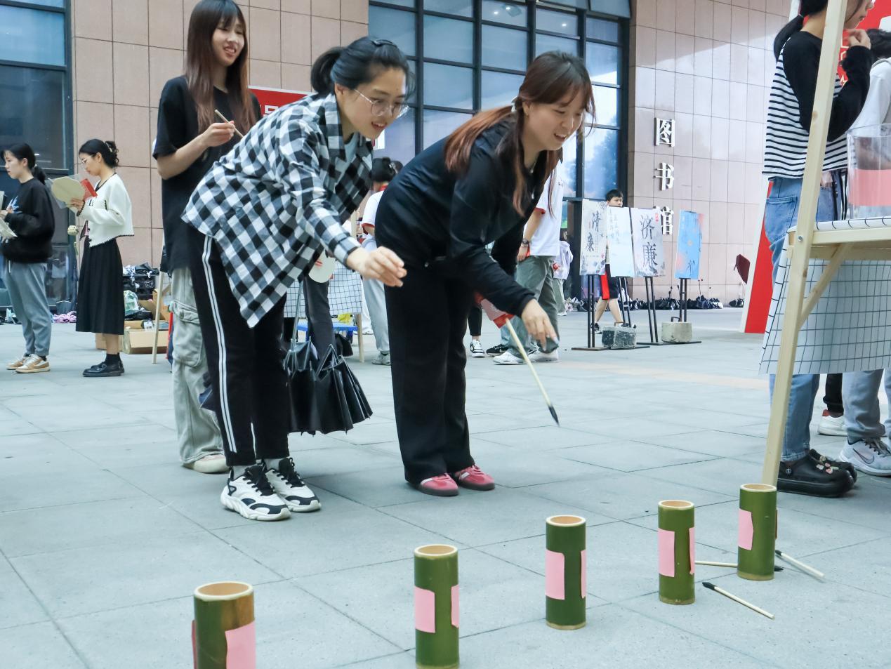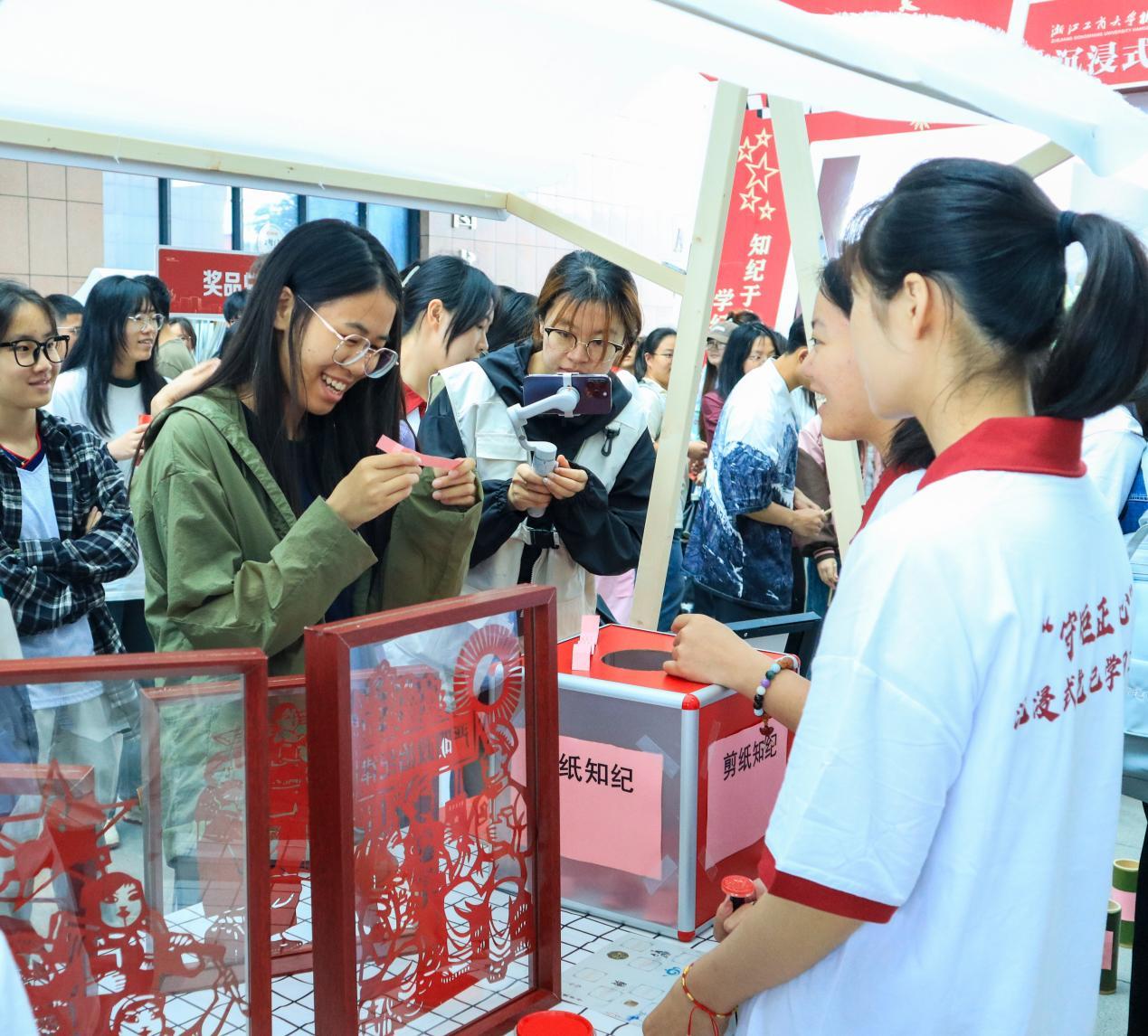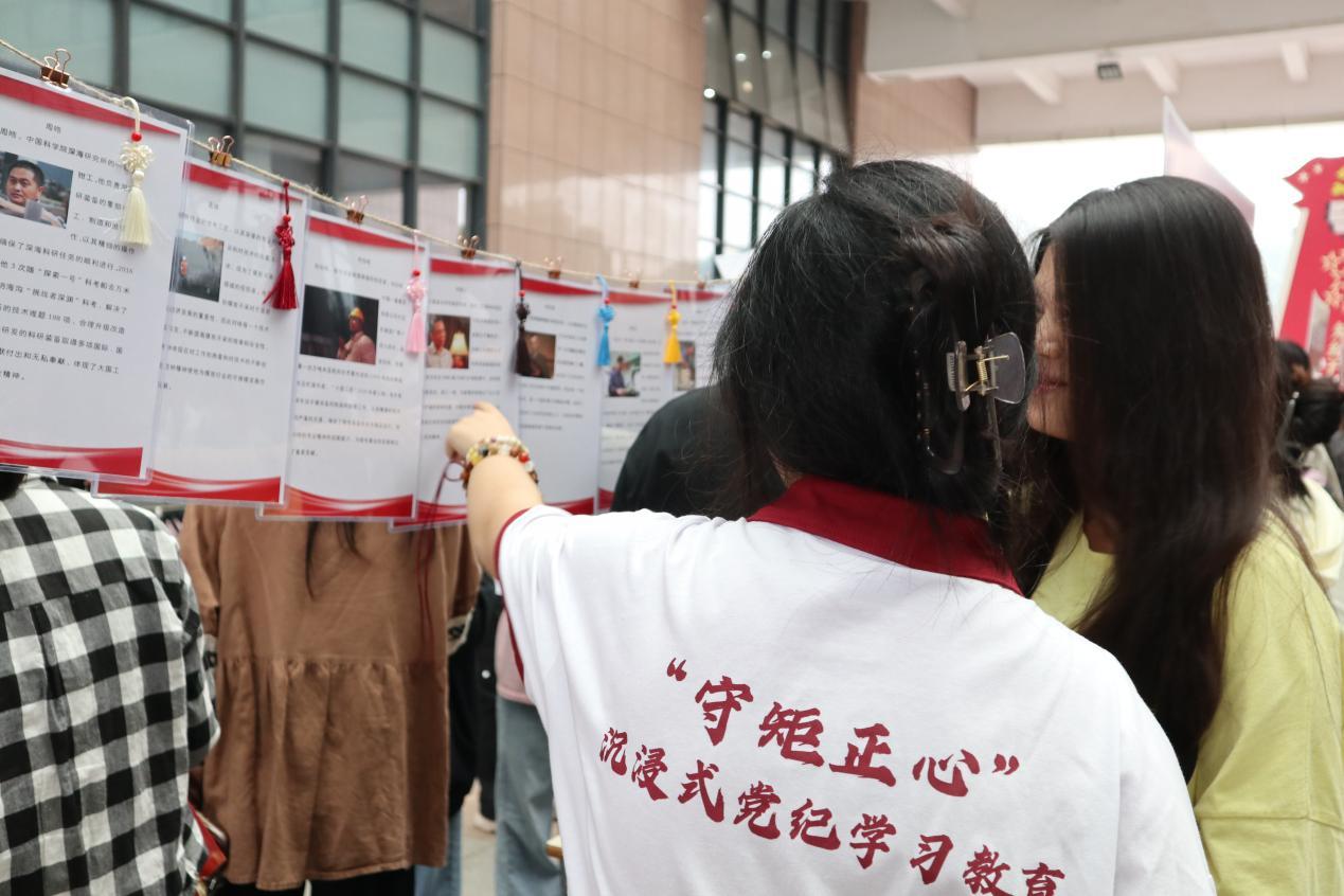 此次沉浸式党纪学习教育共分为七个篇章:“壶中学纪”总则篇、“剪纸知纪”政治纪律篇、“织梦明纪”组织纪律篇、“砚池守纪”廉洁纪律篇、“民心镜鉴”群众纪律篇、“业勤笃纪”工作纪律篇、“居安思纪”生活纪律篇。每个篇章设置一个互动摊位。现场氛围积极热烈,互动摊位前师生党员络绎不绝。投壶明镜中映照党风廉洁,执笔挥墨间书写党纪严明。