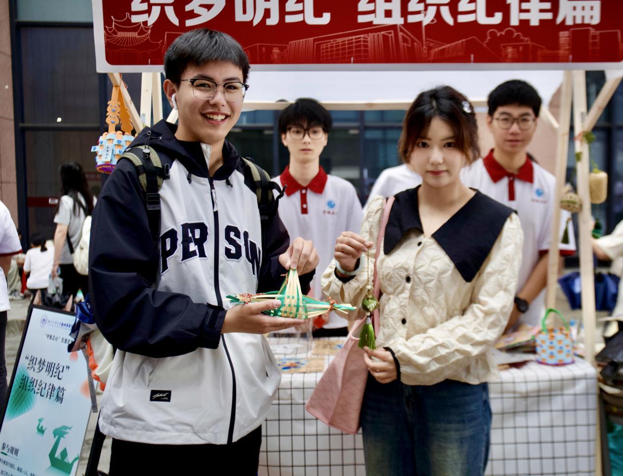 “织梦明纪”区域,党员们编织五彩斑斓的梦想网和端午“龙舟”,每一根线条的交织象征着组织纪律的紧密相连,提醒大家在团结协作中不可忽视的纪律底线。