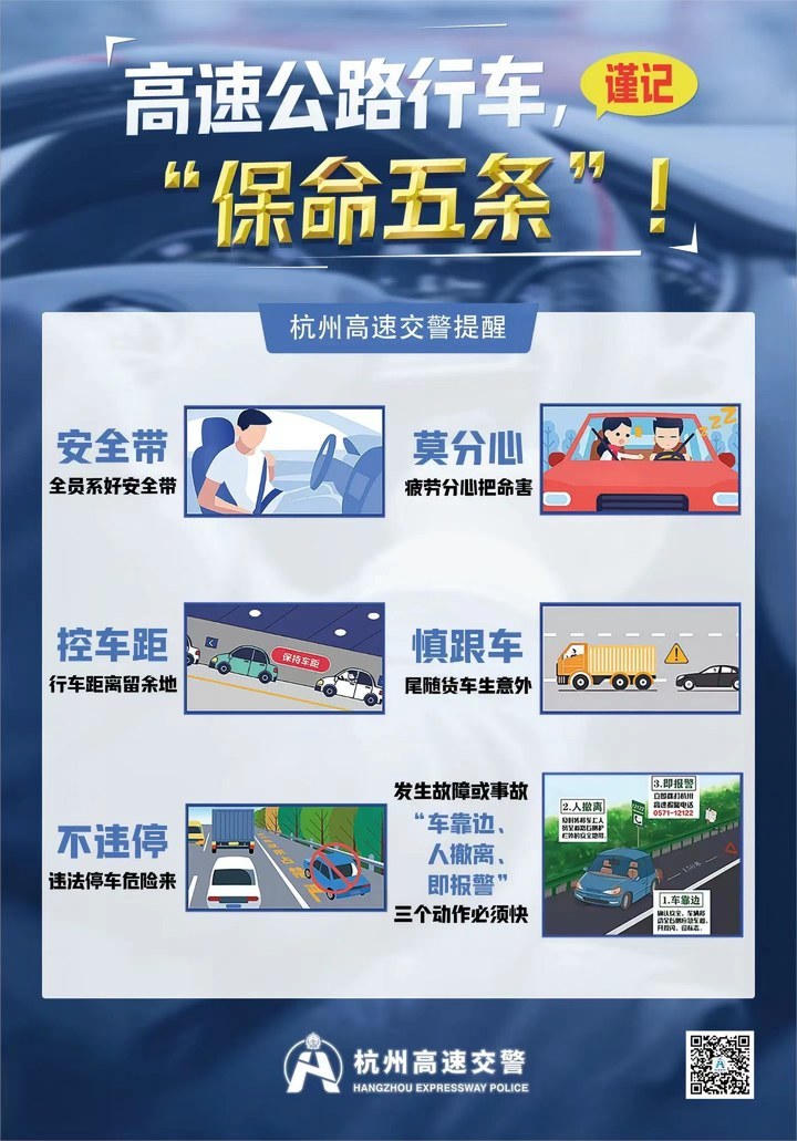 请司机朋友提前规划路线,尽量错峰错时,推荐打开高德导航系统,使用“杭州高速安全精灵”安全提醒功能。