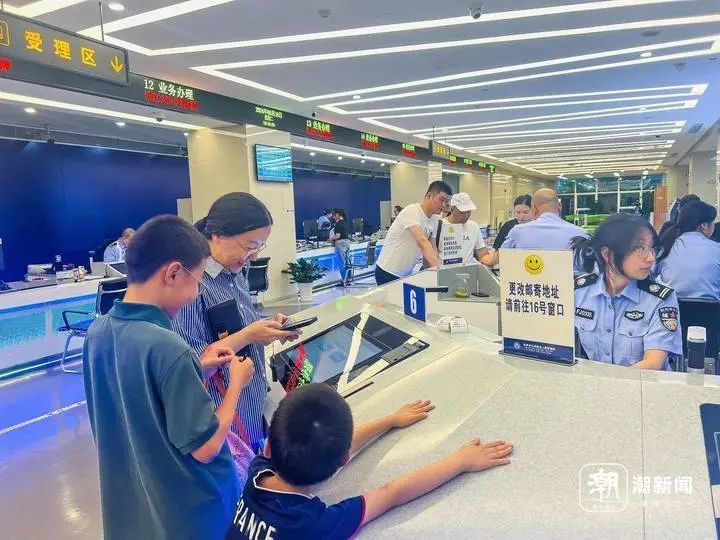 潮新闻记者在接待大厅里看到,前来办理出入境证件的人群主要以儿童,也有老年人和年轻人。“在网上看到了夜间专场的消息,单位就在附近,下了班我就过来了。”90后姑娘小张说,计划七八月想休年假去东南亚,就提前来办一下护照。