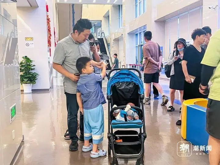 人群中,潮新闻记者还看到了推着婴儿车前来办理证件的奶爸奶妈。