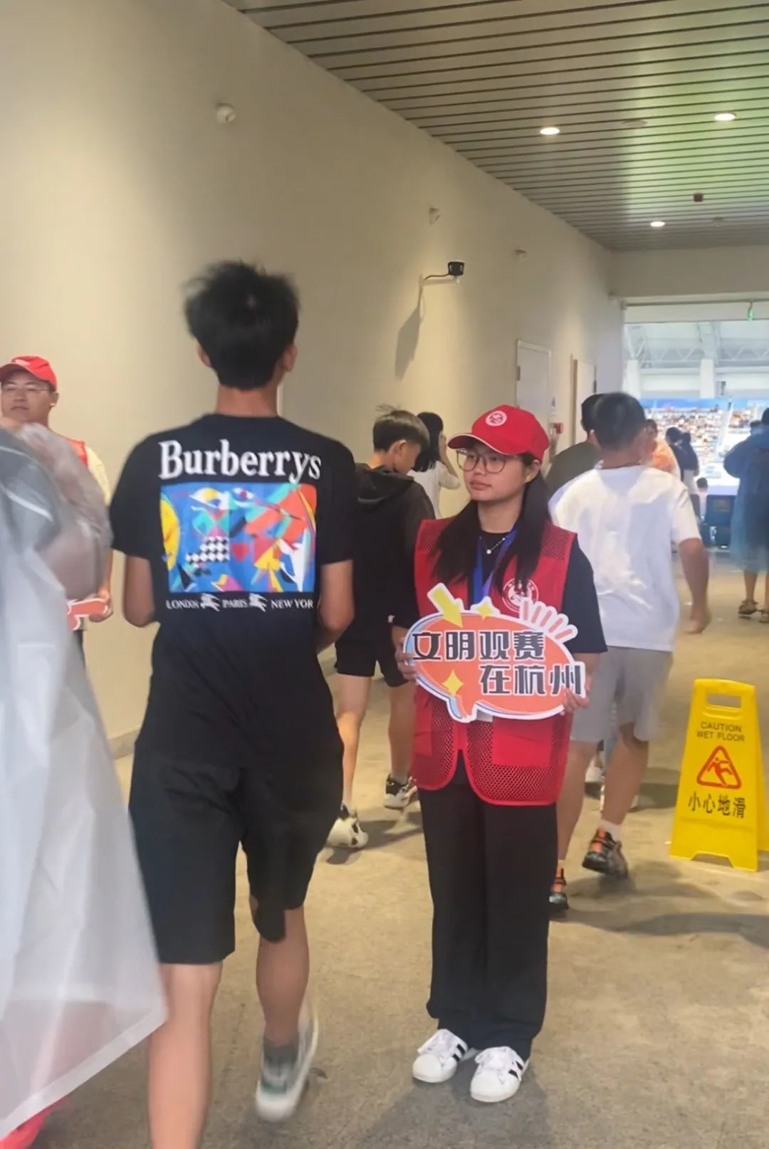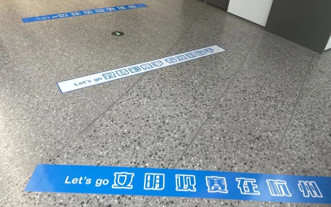 “文明观赛在杭州”“观精彩赛事,看文明临平”“文明临平、因你精彩”“文明观赏,人走场净”等标语和标识出现在体育中心场馆各处。