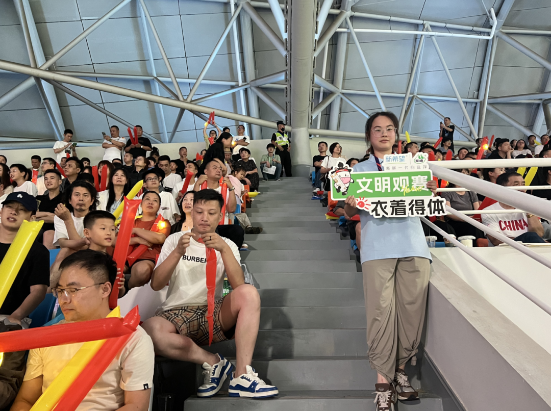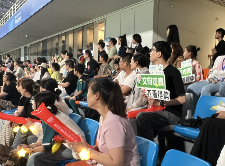 精彩的比赛让人们热血澎湃,而文明观赛氛围更是成为了贯穿全程的靓丽风景线——观众们有序进场、激情呐喊助威、主动带走垃圾……大家在举手投足间,阐释了文明的理念。