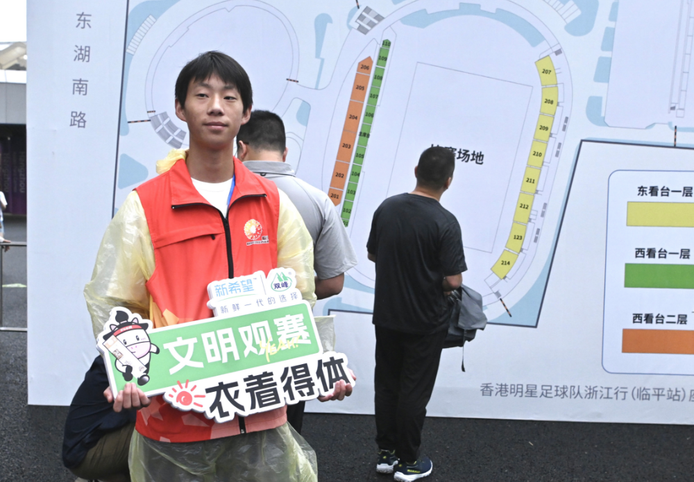 “尊敬的各位观众,欢迎来到临平体育中心观赛,我们在此呼吁有序入场,遵守秩序,文明呐喊,理性助威,保护环境,带走垃圾,文明观赛在杭州,文明观赛看临平,我们一起捍卫主场荣耀。”播报声响起,近万人都自觉遵循这份倡议,入场、中场休息、离场时都文明礼让,不推搡不拥挤。
